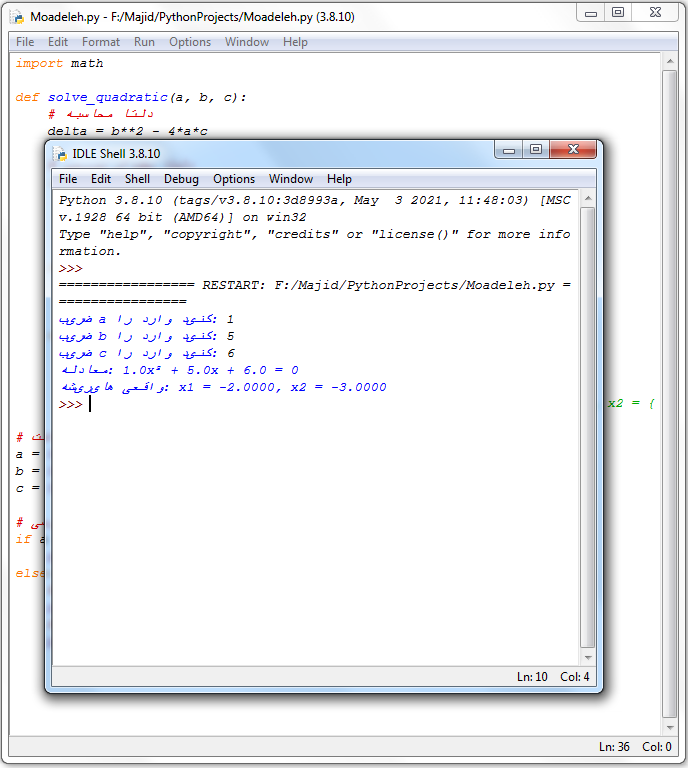 پروژه پایتون حل معادله درجه دوم(رایگان)