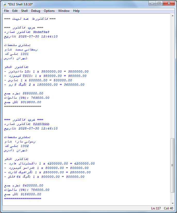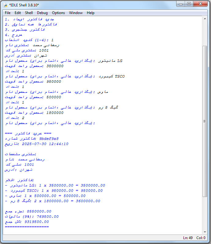 این پروژه ثبت و صدور فاکتور با پایتون امکان ثبت اطلاعات کامل مشتری مانند: